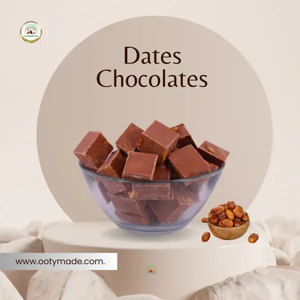 Indulge in the exquisite taste of Ooty Handmade Dates Chocolates, a perfect blend of rich milk chocolate and succulent dates. Our chocolates are crafted with the finest ingredients, ensuring each bite delivers a burst of flavor. These handmade delights are a testament to the tradition and quality of Ooty chocolates, known for their superior taste and texture. Whether you're looking for the best handmade chocolates, a delectable milk chocolate bar, or the finest homemade chocolates in Ooty, our product meets all your needs. Perfect as a gift or a treat for yourself, enjoy the unparalleled taste of our handmade chocolates online.